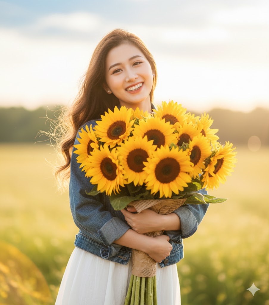 Đây là kết quả của mình khi tải ảnh gốc và câu lệnh tạo ảnh ôm hoa hướng dương với Gemini nhé !